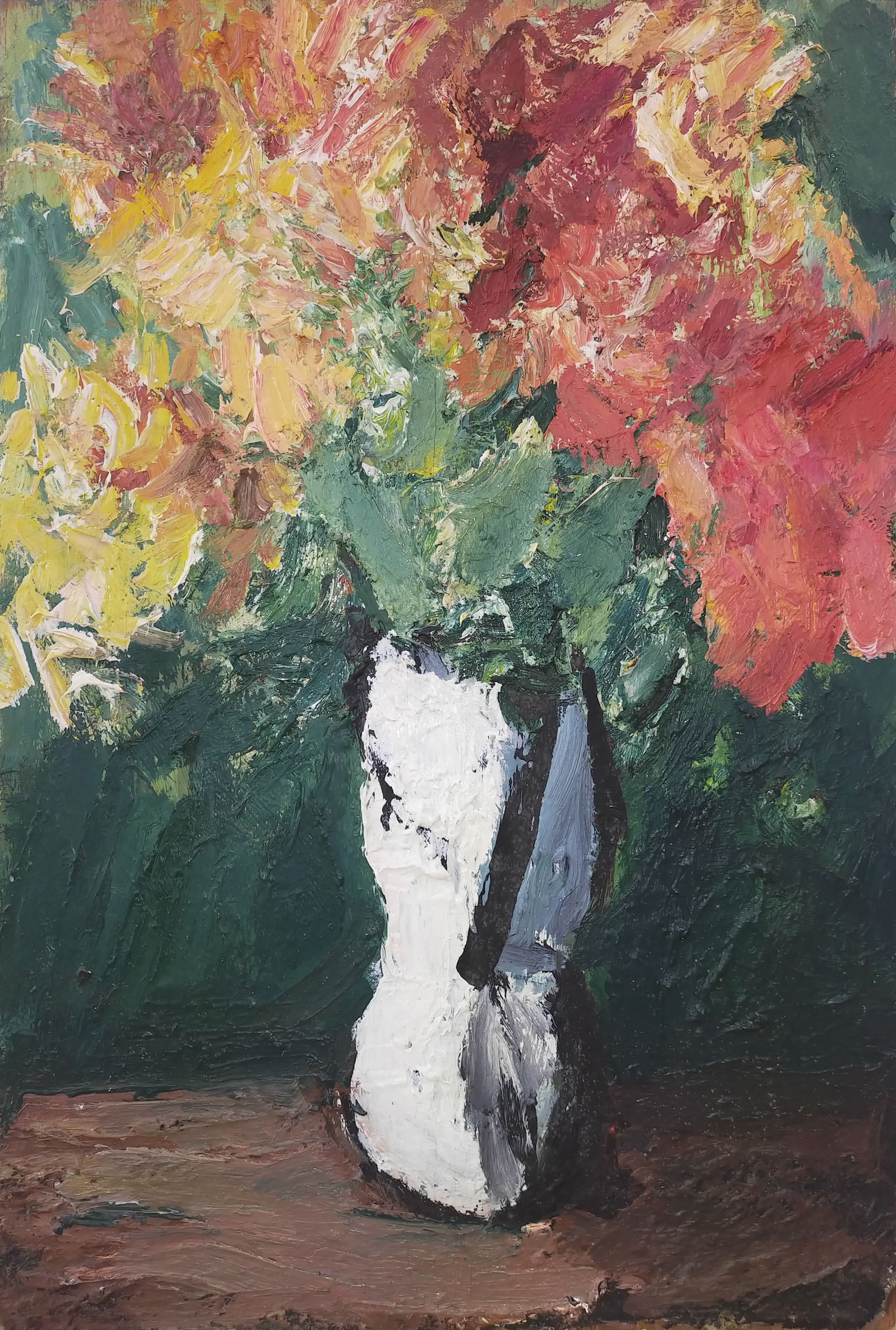宮原先生は1930年、画家 髙橋貞一郎の長女として生まれました。子どもの頃からよく父と一緒に写生に行くなど、絵に親しんで育ちました。女子美術大学在学中から一水会展と女流画家協会展に出品、受賞を重ね、のちに両会で委員を務めます。また、自宅を開放して絵画教室を主宰し、後進の育成にも尽力しました。