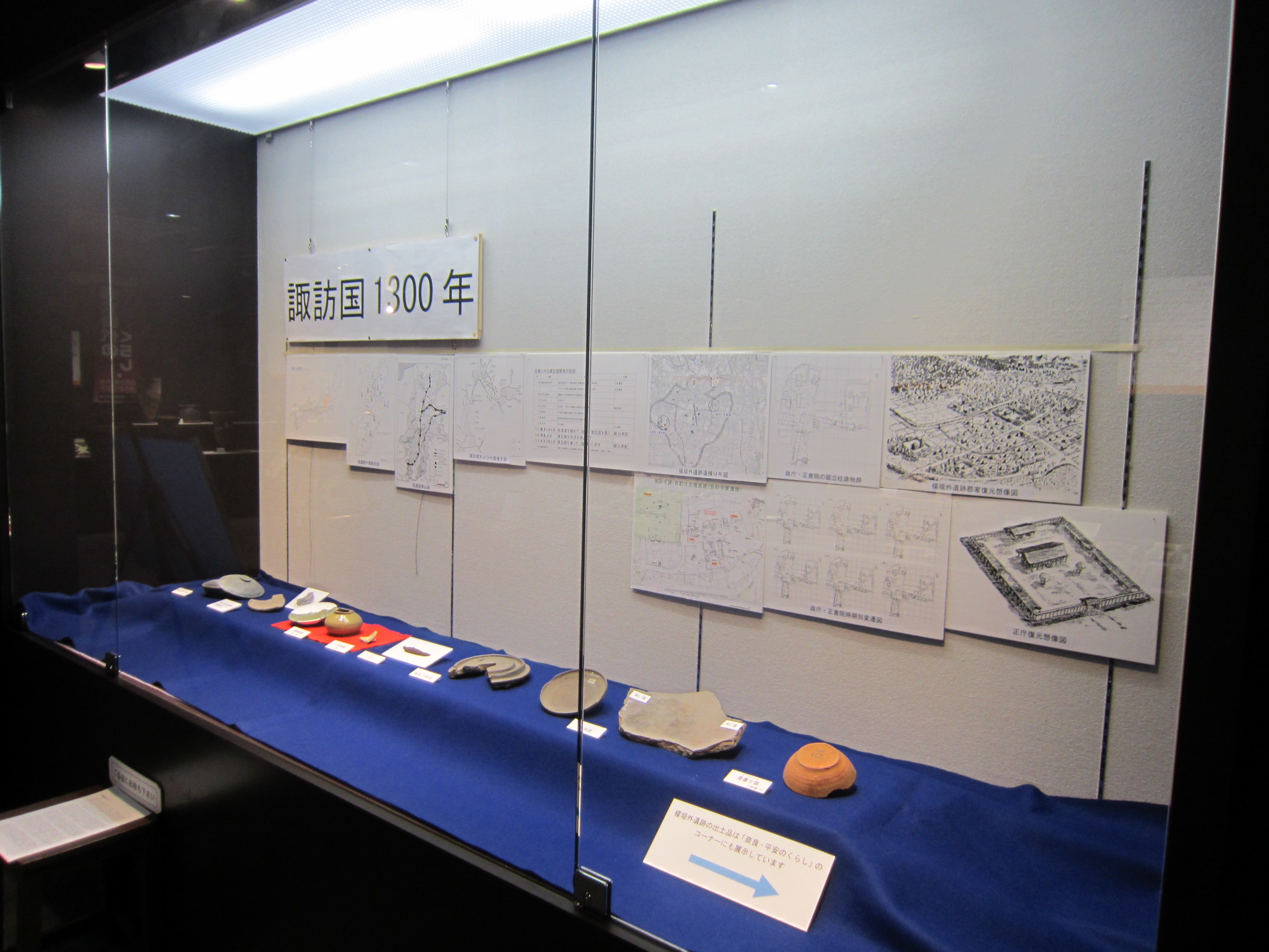 奈良時代に10年間だけ存在した「諏訪国」が、今年2021年に設置から1300年の節目を迎えます。721年に信濃国から分国され、731年に再び信濃国に併合された諏訪国ですが、分国や併合の理由は記録にありません。諏訪国の行政拠点も正確には分かっていませんが、諏訪郡で当時の役所、官衙(かんが)と思われる遺跡が榎垣外遺跡(えのきがいといせき)のみであるため、榎垣外遺跡が諏訪国の中心だったと考えられています。企画展「諏訪国1300年」では諏訪国と榎垣外遺跡をご紹介しています。また、須恵器(すえき)・緑釉陶器(りょくゆうとうき)・陶硯(とうけん)など、榎垣外遺跡の出土遺物も多数展示しています。